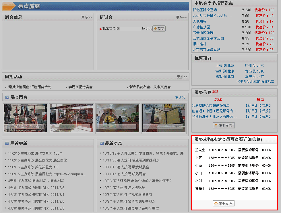如果觀眾或展商需要搭建、運輸?shù)确?,他們可以發(fā)布服務需求,并在展覽會的右下部顯示出來,如下圖所示:
