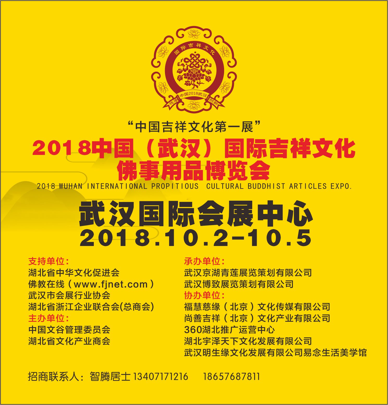 武漢佛事展倒計時60天,感謝“佛教在線”、“佛寶網(wǎng)”、“弘慧網(wǎng)”、“三寶地云寺院APP”等行業(yè)權(quán)威媒體的戰(zhàn)略合作和全面支持。